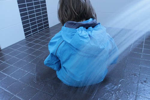 Testin hauskin osuus oli, kun testattiin vedenpitävyyttä (5000mm) ja teipattuja saumoja.